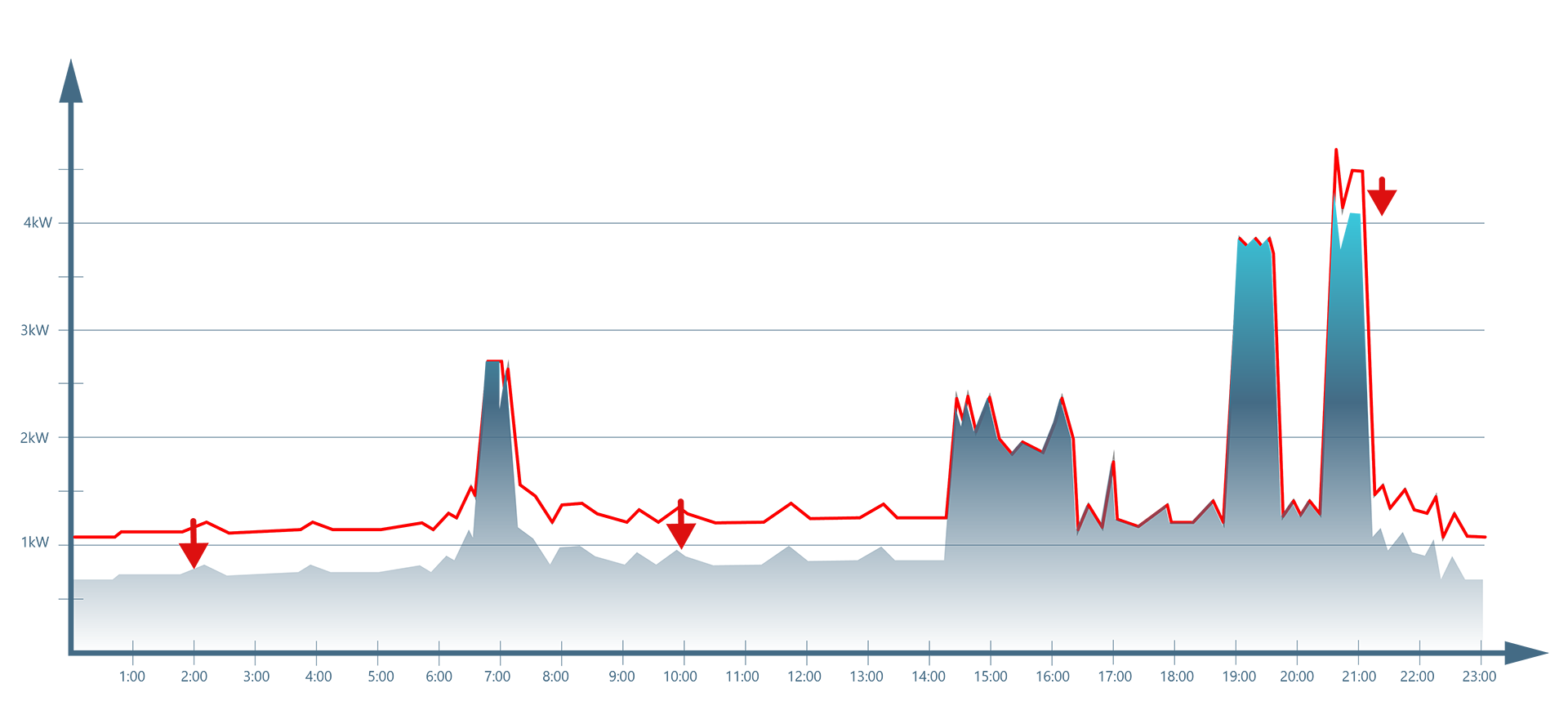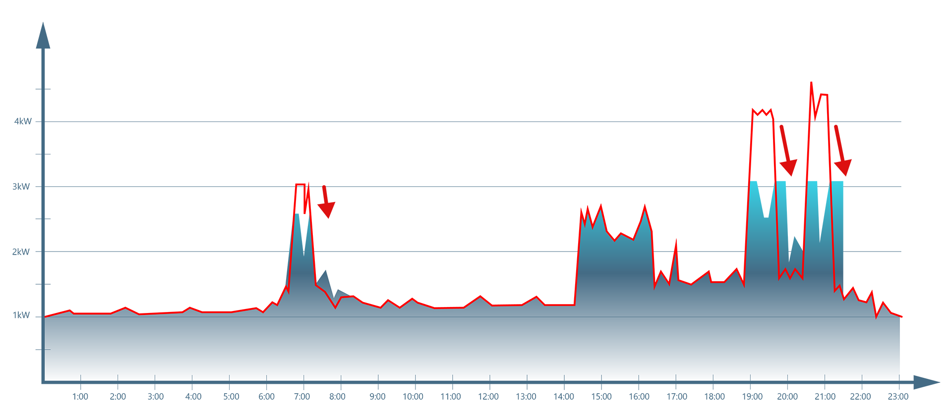 用户可以通过可视化轻松检测峰值消耗。此外,您可以暂时关闭某些设备。这些也是可以无需您手动干预即可避免高峰。