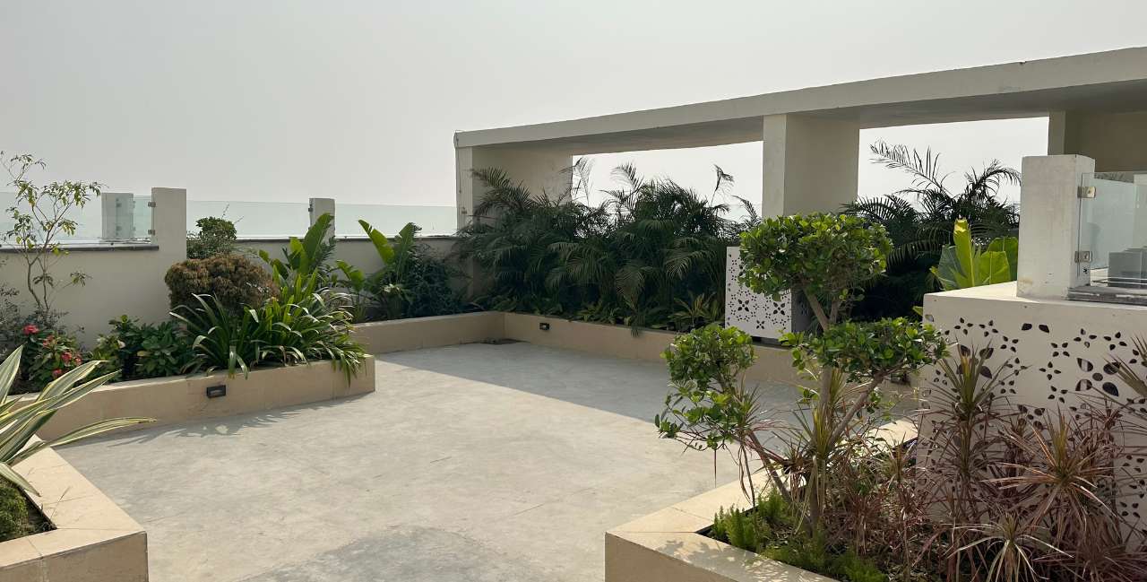 The Rooftop Club comes with following offerings: Exterior Glass Partition for maximum sun exposure. Fully equipped gym rooftop juicery. Rooftop library, yoga + pilates room, all being part of a 10,000 Sq.Ft (1000m²) open luxury and ambient sitting and relaxation space.