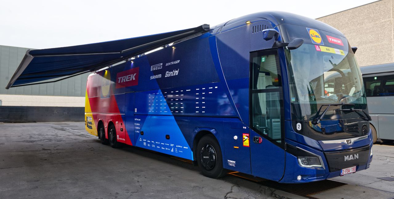 To help riders perform at their best while travelling, Lidl-Trek invested in two modern touring coaches that serve as a mobile base during races across Europe. Both coaches are equipped with the TELETASK home automation system, which centrally controls lighting, blinds, and other functions. This fully optimises comfort and safety on the road and during rest periods.