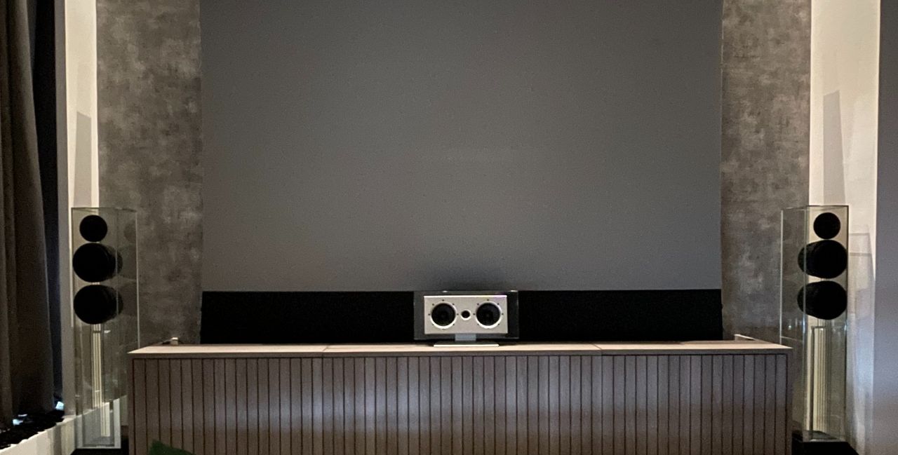 Living room setup: a cosy and elegant space that seamlessly transforms into a home theater at the touch of a button, showcasing the comfort and convenience of TELETASK automation.