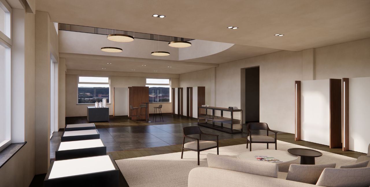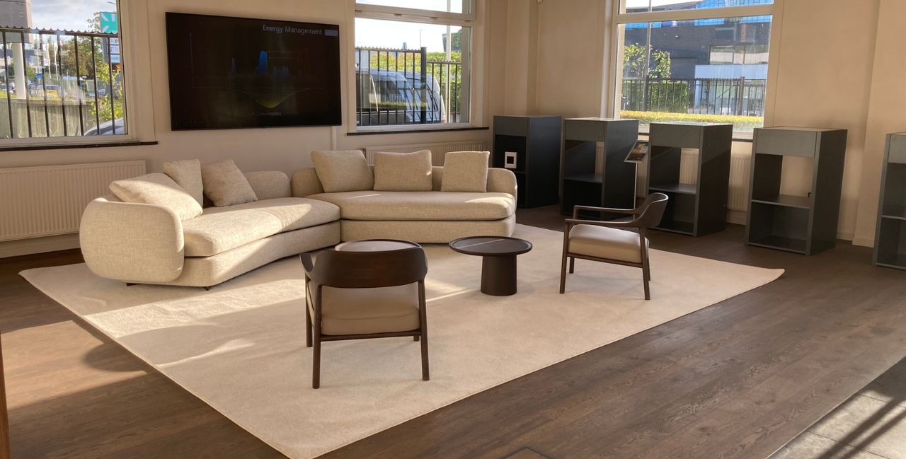 Art takes an equally important place as architecture. Jeroen Brouckx's painting brings movement, depth, and emotion to the interior and serves as the artistic heart of the showroom. The work provides the space with a contemplative dimension and clearly shows how art can elevate an environment, even when technology is discreetly present.