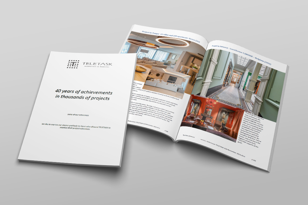 From the very beginning, TELETASK has harbored a passion for home automation—a passion that we lovingly infuse into our projects. You can now access the most recent edition of the TELETASK References book for November 2023 by downloading it here.