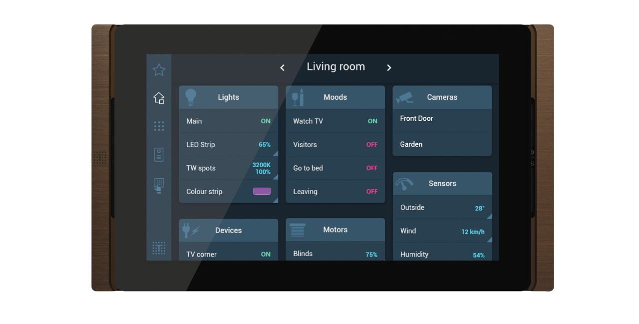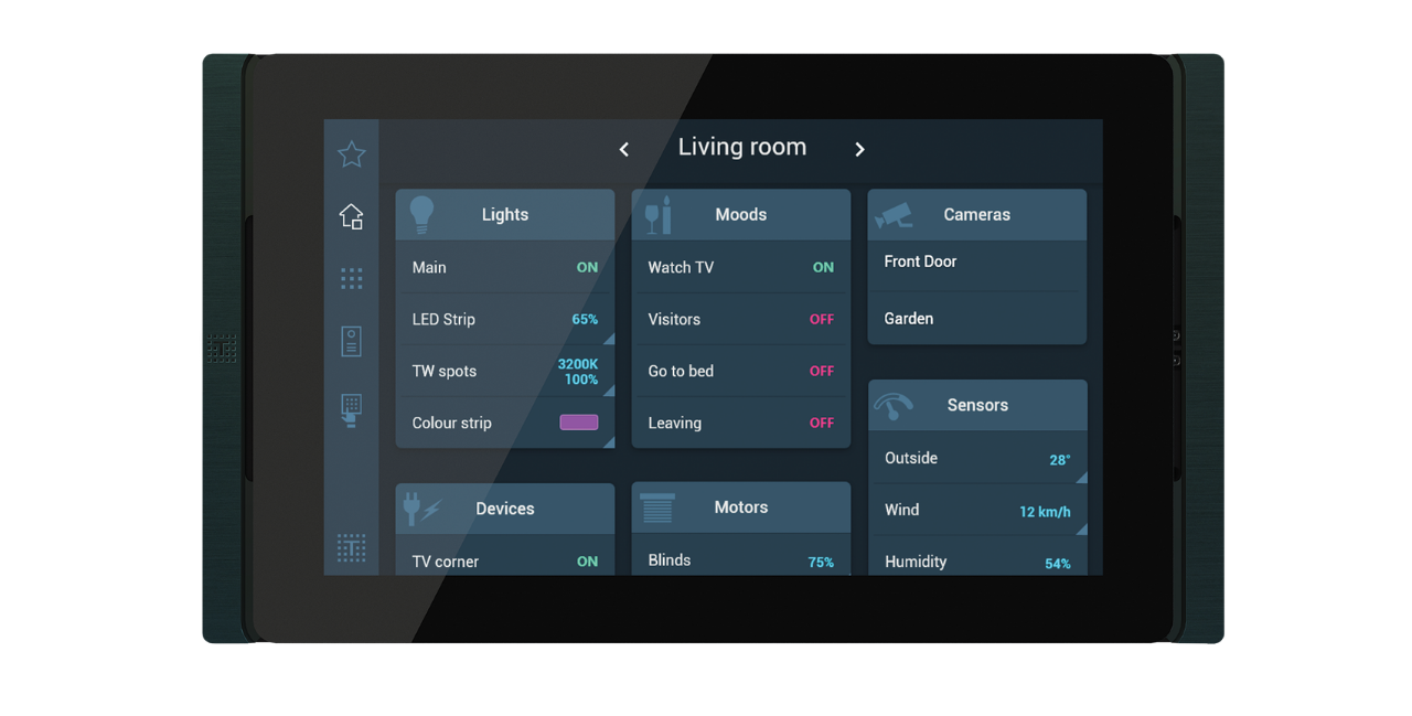 Outre le contrôle total de toutes les fonctions de la maison intelligente, OPUS est également un portier vidéo intérieur VoIP haut de gamme avec des fonctionnalités presque illimitées. C'est aussi un interphone et un téléphone mains libres parfait. Et il ne peut être égaré. Il se trouve sur le mur où vous en avez le plus besoin. Besoin de plusieurs unités ? Comme vous le souhaitez. OPUS n'a besoin que d'une connexion PoE pour tout savoir, tout faire et tout voir (par vos caméras). Vous pouvez même regarder les vidéos enregistrées de votre vidéophone.