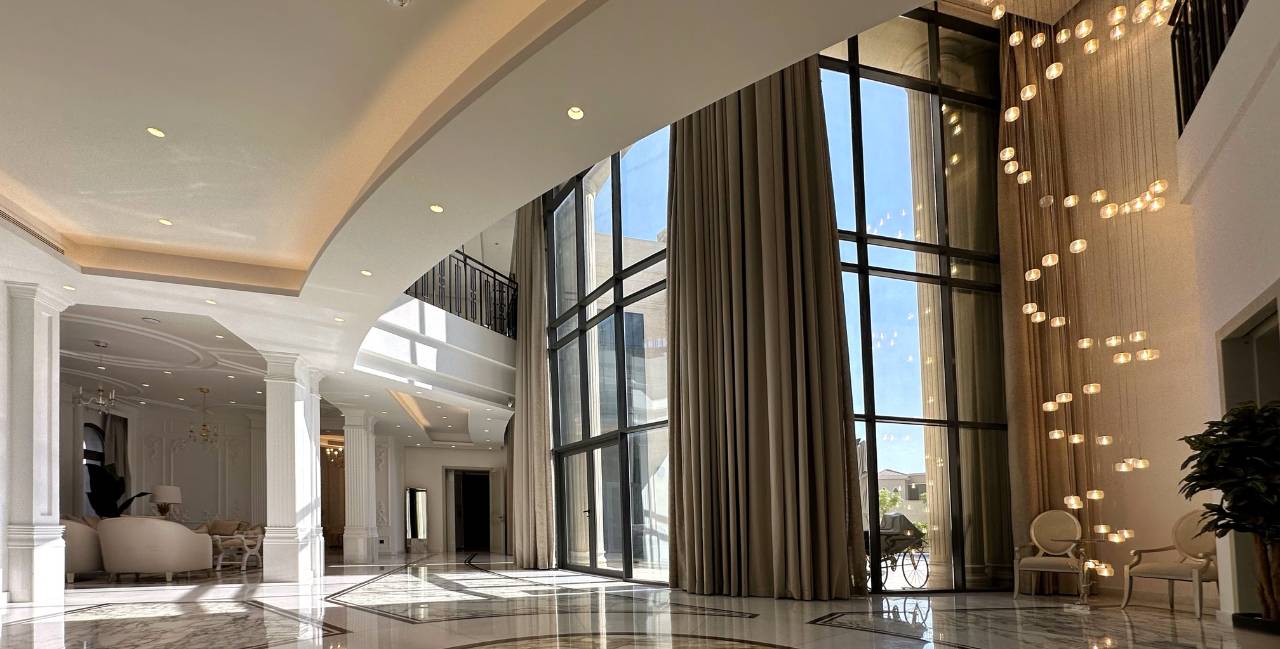 Dubai is gekend om zijn gigantische moderne bouwprojecten. Deze recent gebouwde en indrukwekkende luxevilla doet aan de buitenkant eerder klassiek aan, maar is binnenin op en top hedendaags. Het geïntegreerde domoticasysteem tilt het wooncomfort naar het hoogste niveau. Verlichting, bewakingscamera’s, gordijnen en airco: alles is gekoppeld.
