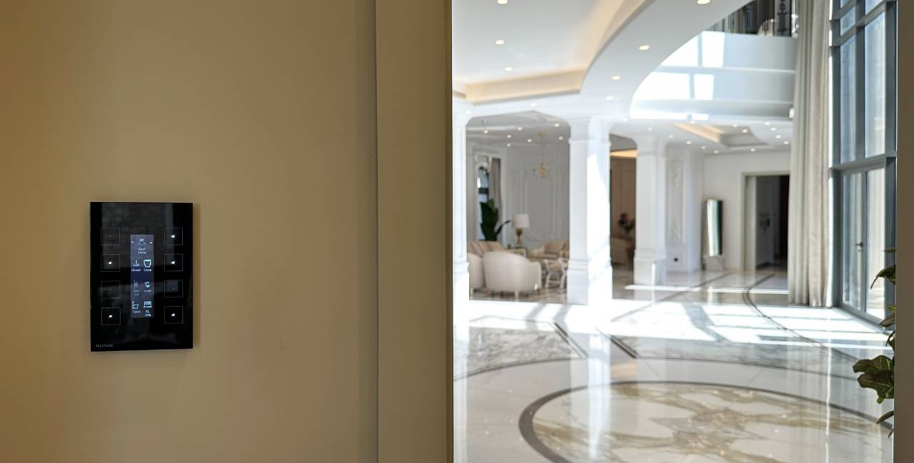 De bouwheer koos zelf voor domotica van TELETASK, geïnstalleerd door UTS (United Turnkey Systems), een ervaren integrator uit Dubai. Gevraagd naar zijn voorkeur voor TELETASK, verklaart hij: “Het gebruiksgemak, het mooie design van de bedieningspanelen op de muur, de duurzaamheid en het robuuste systeem, waardoor er amper onderhoud en herstellingen zijn. Het is een betrouwbaar merk met decennia productontwikkeling op de teller. TELETASK staat voor mij garant voor topkwaliteit en het systeem is te integreren met heel veel verschillende technieken en merken. Voor de integrator is het gemakkelijk te configureren en voor de gebruiker blijft het ondanks de complexiteit van het geheel, zeer gebruiksvriendelijk.’