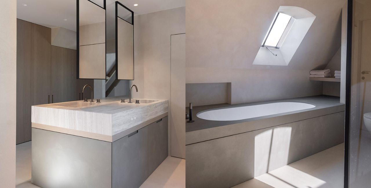 “Als interieurontwerper vind ik het ideaal dat de domotica de esthetiek van mijn ontwerp niet verstoort”, legt ze uit. “Het gaat op in het minimalistische geheel van mijn interieurconcept. Zo bljft alles ‘zen’. Ik moest mij helemaal niet aanpassen aan bepaalde technische elementen, zoals de plaats van de thermostaat of een ander bedieningssysteem. Dat soort dingen heb ik liever niet te zichtbaar. Doordat alles geïntegreerd is, zijn er minder bedieningselementen nodig en dus amper te zien.”