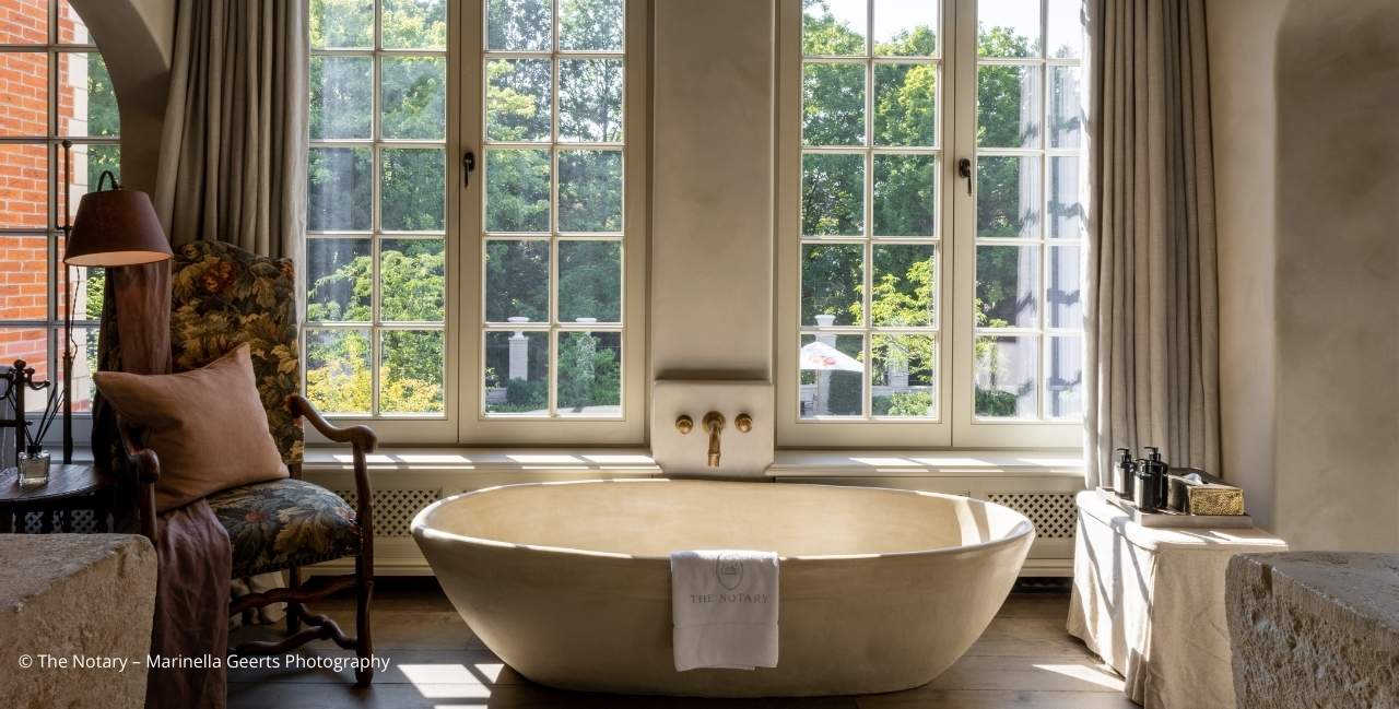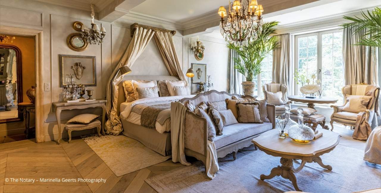 Meesterdecorateur Pieter Porters gaf elk van de acht suites een eigen, bijzondere stijl – de ene al weelderiger dan de andere. Maar elke suite beschikt over intelligente sturing met voorgeprogrammeerde sferen. “Voor het comfort van de gasten wilden we zoveel mogelijk automatiseren”, verklaart Thomas Ulenaers, die samen met Marnik Minelli eigenaar is van The Notary.