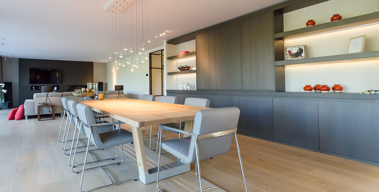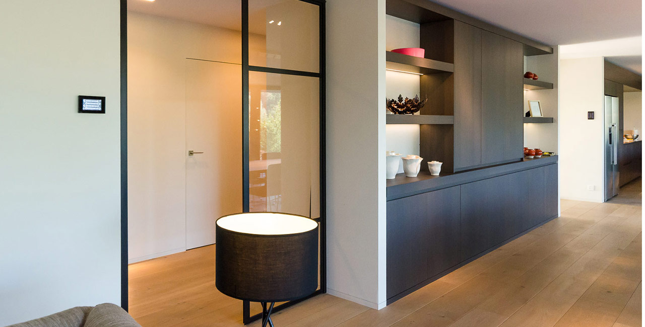 Už pri vstupe do obývacej izby vás zaujme exkluzívny minimalistický dizajn. Užívateľské rozhrania TELETASK dokonale zapadajú do interiéru - sú strategicky aj diskrétne umiestnené. V tomto rodinnom dome spočíva pridaná hodnota domácej automatizácie hlavne vo vysokej miere pohodlia a exkluzívnom dizajne. Dotykové panely poskytujú vo väčšine miestností vypínanie svetla, teploty a motorizované clony. Centrálna dotyková obrazovka v kuchyni tiež ovláda postrekovače na záhrade, slnečné clony nad terasou a RGB LED svetlá v susednej obývacej izbe. K dispozícii je viacizbový zvuk s ďalšími vonkajšími reproduktormi v záhrade. Niekoľko základných miestnych nálad zmení náladu obývacej izby v priebehu niekoľkých sekúnd. Integrácia s videotelefónom zvyšuje tiež úroveň bezpečnosti.